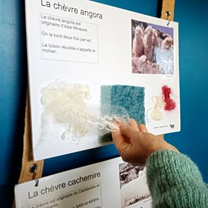 Une exposition complète avec des panneaux présentant des races ovines européennes, une carte d’Europe avec localisation d’une quarantaine de races et échantillons de laine correspondants…